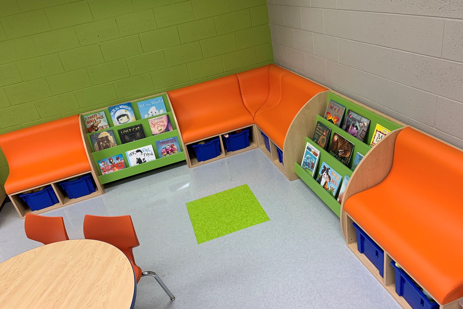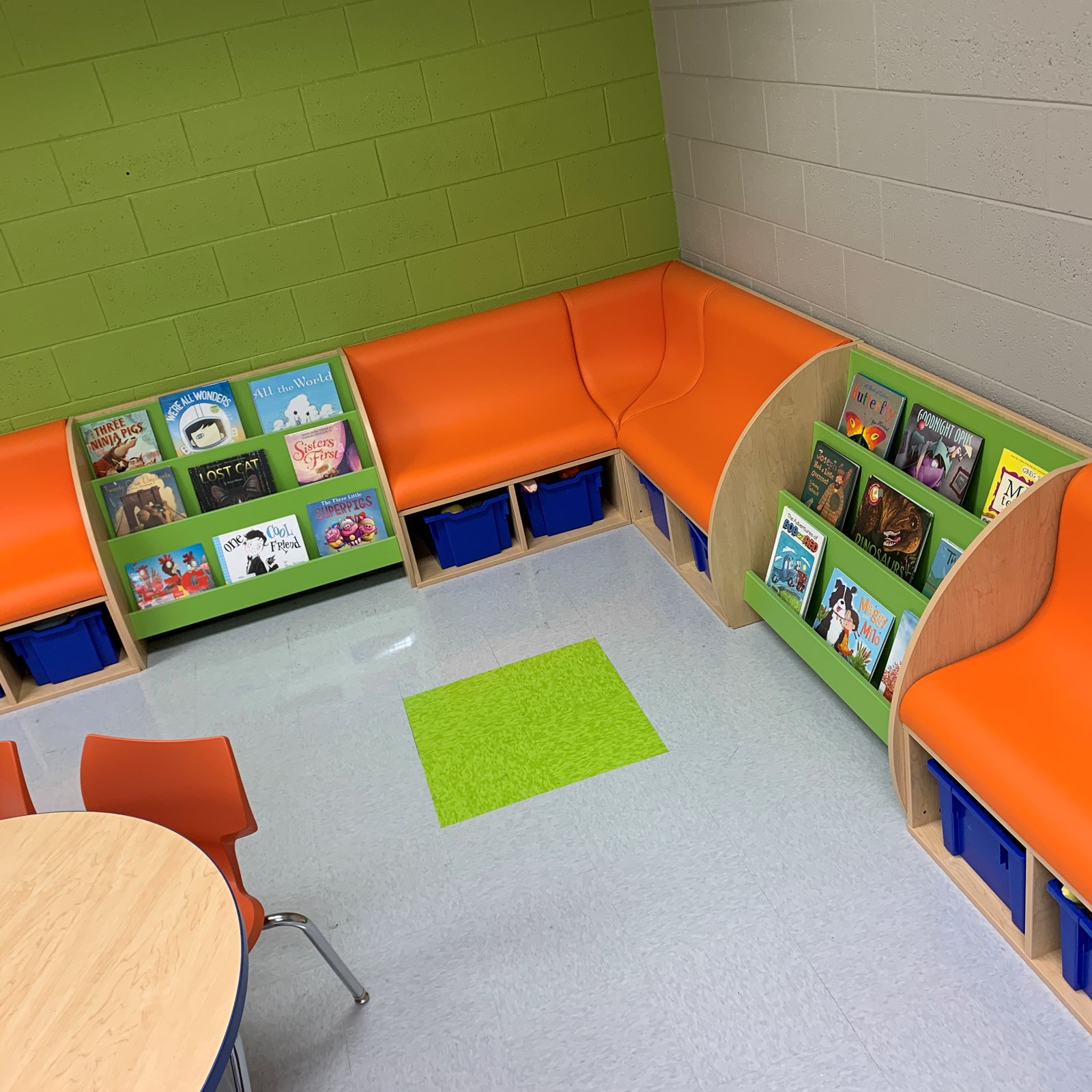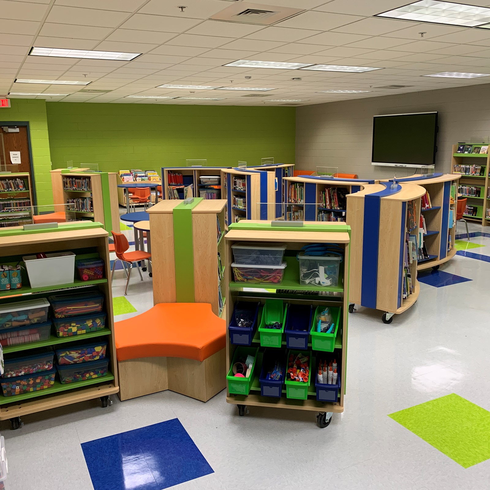 Vanessa Witherell, the Technology/Library Teacher at United North Elementary School, wanted the students to have an updated, flexible area that could accommodate their needs. She wanted to improve the space by incorporating fun, bright colors and use mobile furniture so the room could be a multipurpose space.