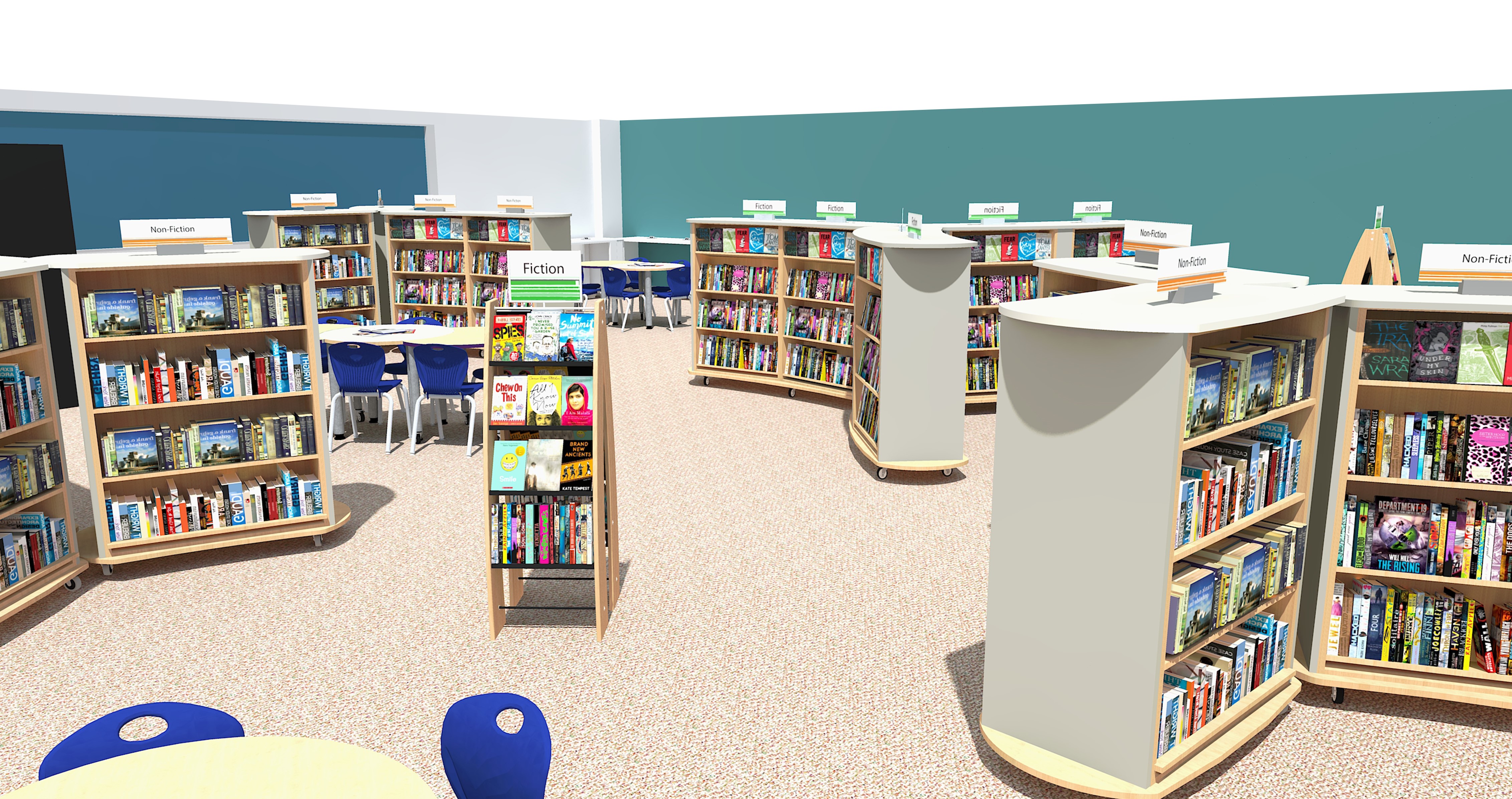 “Thank you so much for your quick work regarding the 3D drawings. They were very helpful when I was making my initial presentation to my superintendent. When I looked at the plans, I felt very heard and understood because of the counter height areas, the story area, common learning areas and overall flow of the room. I love how you use the support columns as an advantage, not a distraction or dividing point. There are so many smart details included in the drawing. I am enthusiastic about the overall plan.” ~ Librarian, Katie Nestberg