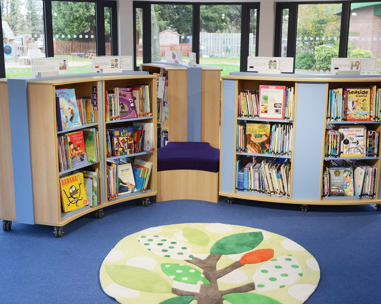 BookSpace shelving brings a special excitement to a children’s area. Instead of separating shelving in one area of the library and play in another, we work to integrate the offer so the books are presented as part of the fun. Shelving is combined with interactive displays, creative seating features and the opportunity to play. Suitable for children up to 11 years.